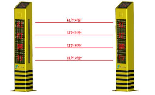 的绿灯亮时,行人从主柱和副柱之间通过时,阻断光栅红外对射,但是设备不会发出语