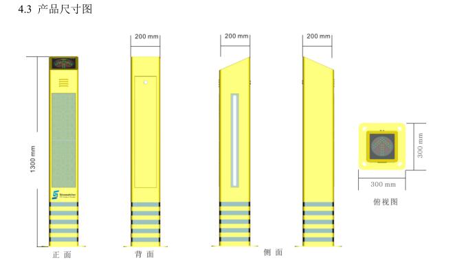 4.4.2 提示柱正面高度 1.2m,背面高度 1.3m,顶部为前倾式结构,由红色的“×”和